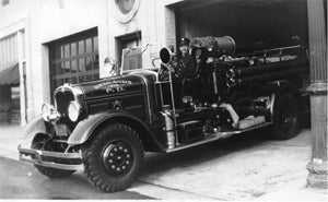 1930 brought about a welcome change. The department switched to pneumatic tires. On April 22 1931, the department purchased a city service ladder truck on a Mack chassis. It also carried a 100 gallon water tank, a small power take off pump for booster only.